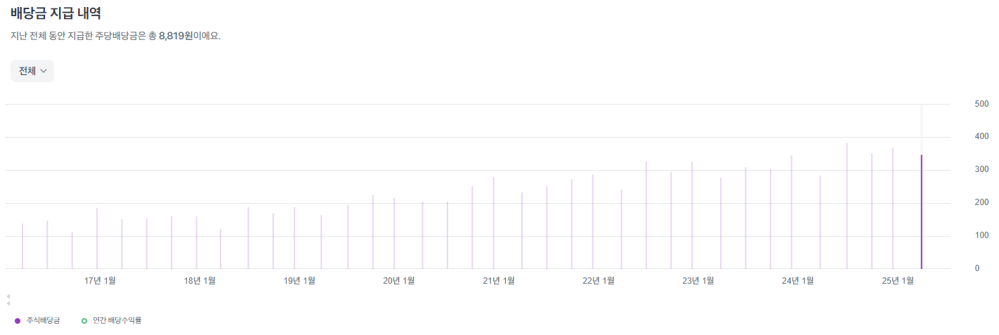 2. 과거 10년 연평균 수익률(주가+배당)은 약 9.9%이며, 배당 성장률은 무려 17%대에 달합니다.